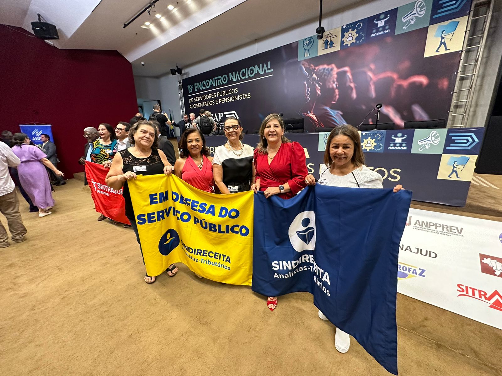 A Diretoria Executiva Nacional (DEN) do Sindireceita, representada pelas diretoras Iêda Miranda (secretária geral) e Marlene Cambraia (Aposentados e Pensionistas), participou nesta quarta-feira, dia 16, do 18º Encontro Nacional de Servidores Públicos Aposentados e Pensionistas, realizado pelo Instituto MOSAP no Auditório Nereu Ramos da Câmara dos Deputados. O evento teve como pauta a luta pela aprovação da Proposta de Emenda à Constituição (PEC) nº 06/2024, conhecida como PEC Social.