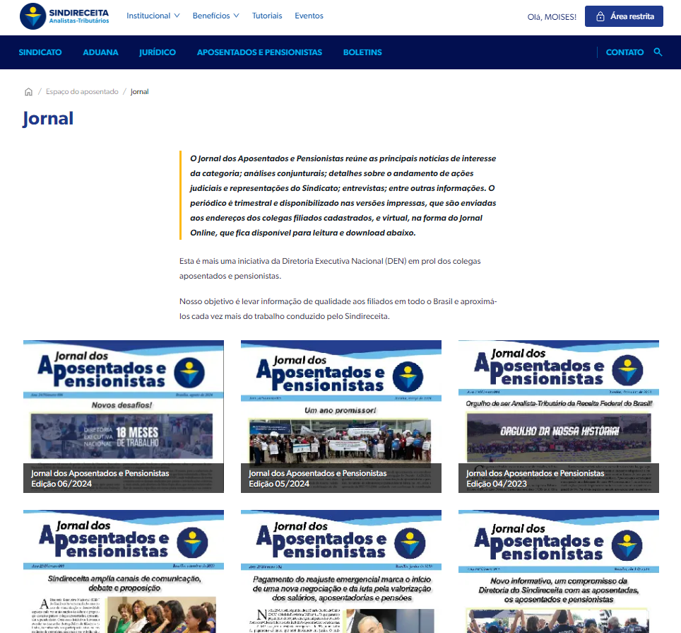 Então não perca tempo, venha conhecer sua página no site do Sindireceita. Segue um roteiro sobre a página Aposentados e Pensionistas: