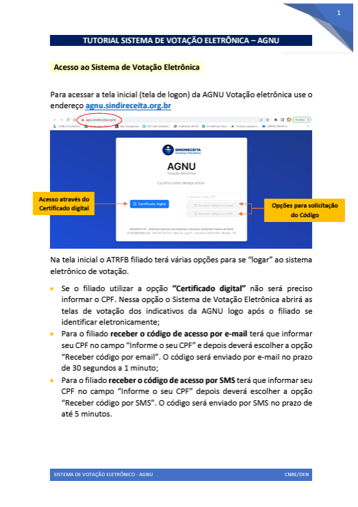 A opção “Como votar na AGNU” apresenta um tutorial sobre o Sistema de Votação Eletrônica do Sindireceita, que é usado para a votação nas nossas Assembleias Gerais Nacionais Unificadas.