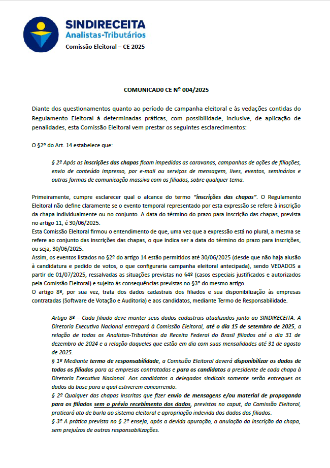 Comunicado CE nº 004/2025