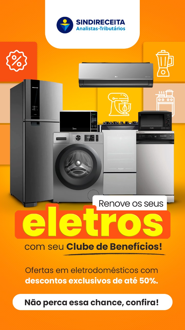 Nesta semana, filiadas e filiados contam com descontos exclusivos em eletrodomésticos selecionados, como máquina de lavar, secadora, fogão, robô aspirador, geladeira, cafeteira, ar-condicionado e muito mais.