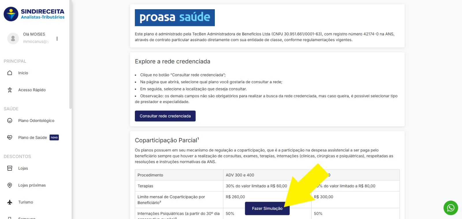 Conforme destacado anteriormente, nesta primeira fase apenas os filiados e filiadas do Distrito Federal, Mato Grosso do Sul, São Paulo, Amazonas, Pará e Bahia poderão contratar planos da Proasa Saúde. Os colegas destes estados podem realizar uma simulação sobre os planos no site do Clube de Benefícios do Sindireceita (clique aqui). Confira o tutorial abaixo sobre como acessar a simulação no site do Clube.