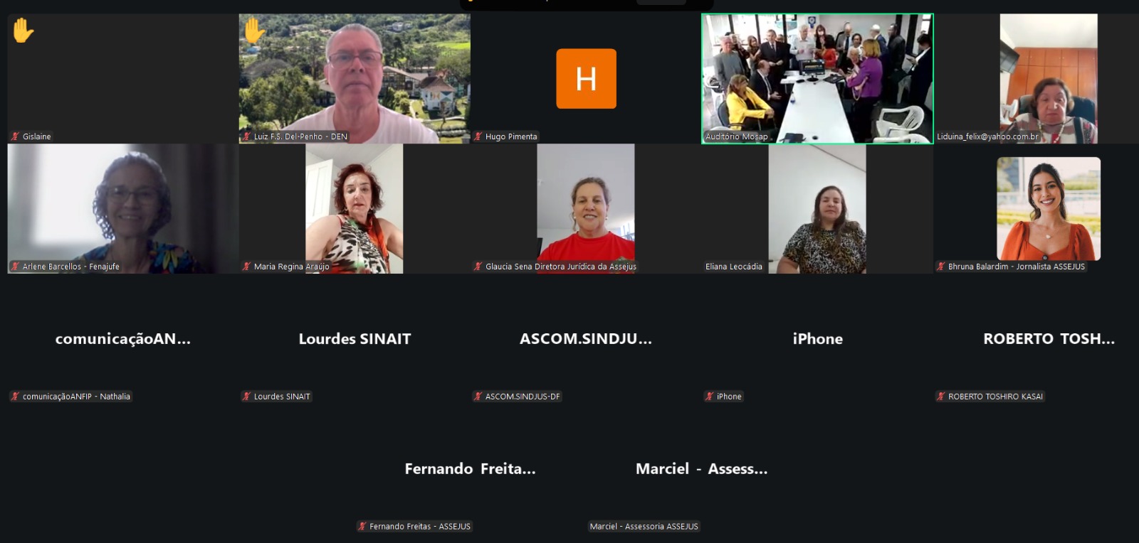 Ainda ontem, no período da manhã, a diretora de Aposentados e Pensionistas, Marlene Cambraia e a secretária-geral da Diretoria Executiva Nacional do Sindireceita, Ieda de Miranda participaram de uma reunião no Instituto Mosap para tratar de diversos temas de interesses dos servidores e servidoras aposentadas e pensionistas.