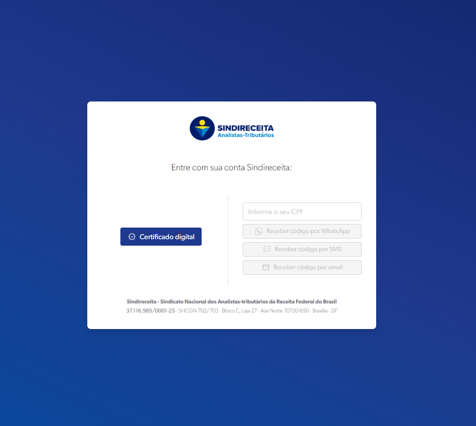 Acesse o portal do Sindreceita com sua conta: