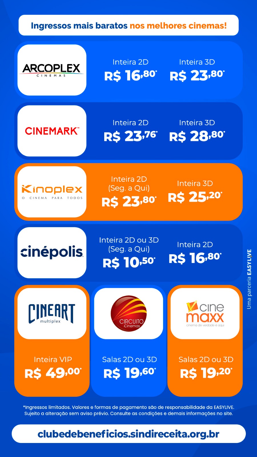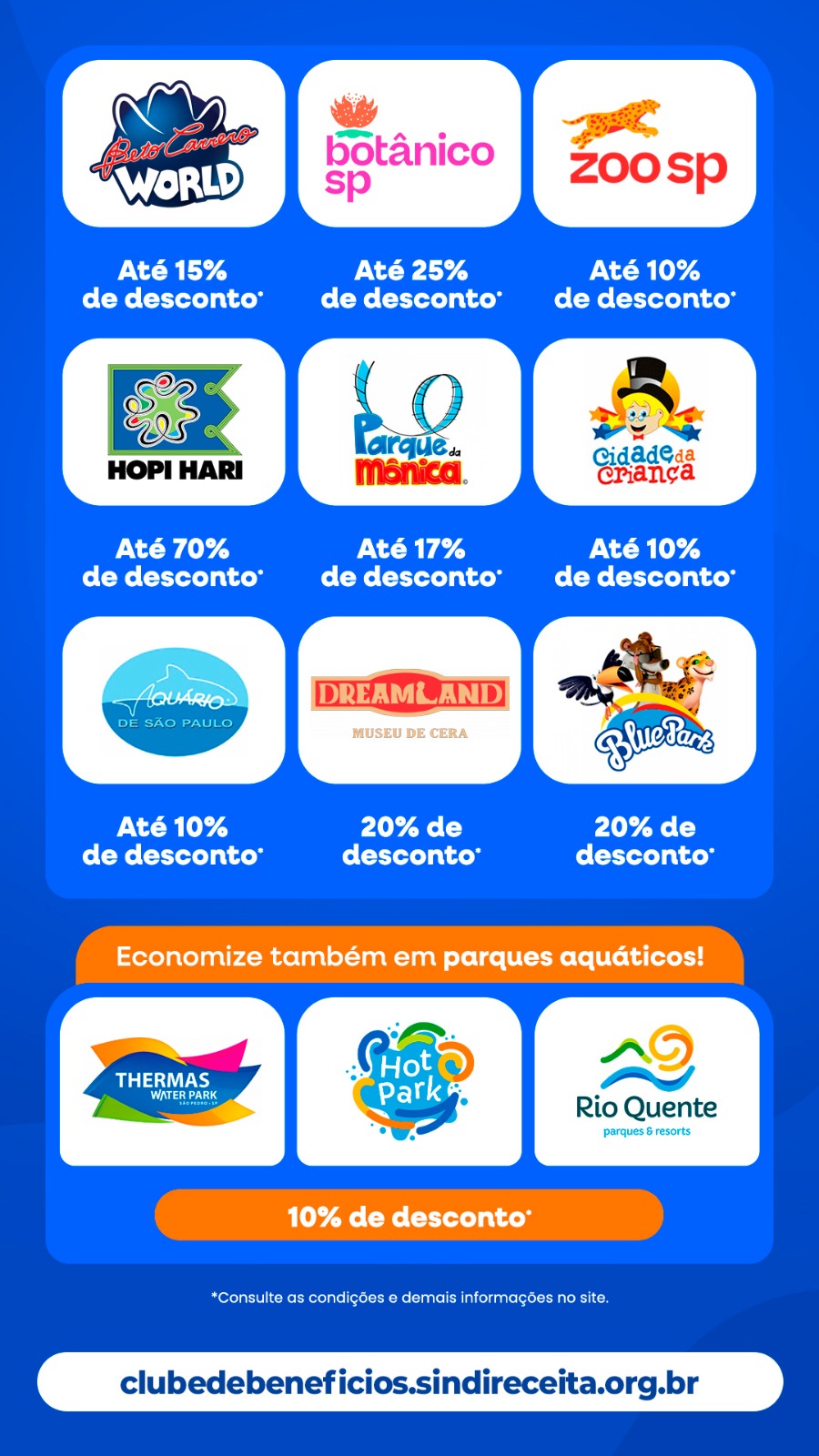 Diversão, descanso e economia podem caminhar juntos. O Clube de Benefícios do Sindireceita disponibiliza aos filiados descontos exclusivos em cinemas de todo o Brasil, além de hotéis, resorts, parques de diversões e parques temáticos.