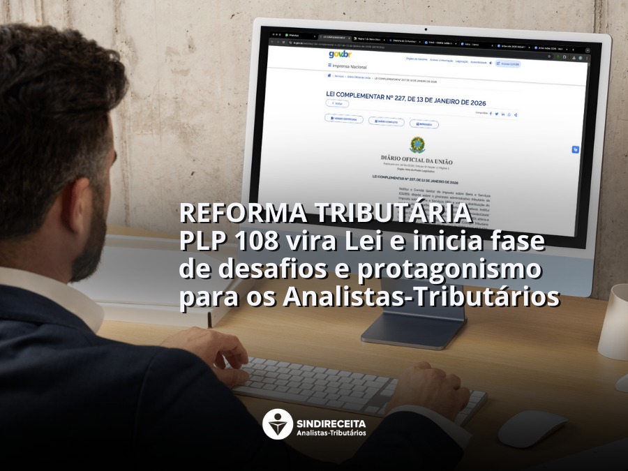 Foi como parte do compromisso com um debate qualificado que o Sindireceita enviou uma Nota Técnica à RFB, solicitando o veto de um dispositivo específico do PLP 108/2024. O entendimento oficial institucional foi de que nenhum dispositivo da, agora, Lei Complementar 227/2026 interfere nas atribuições de qualquer cargo da Carreira Tributária e Aduaneira da Receita Federal do Brasil ou na execução das tarefas cotidianas do Órgão.
