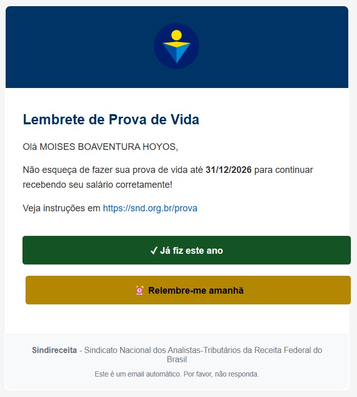 · Já Fez a Prova de Vida? Nos avise com um clique, e não enviaremos mais lembretes este ano.
