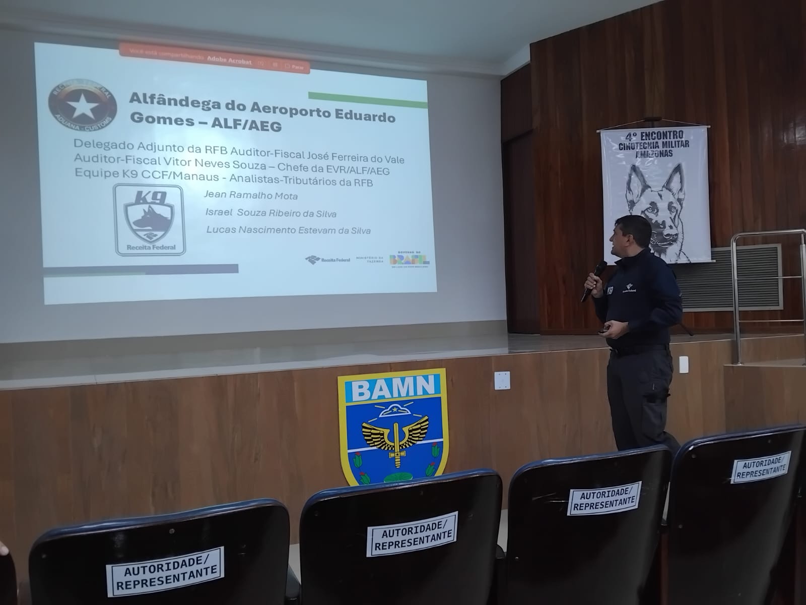 Jean Mota e Israel Souza Ribeiro da Silva integram a Equipe de Vigilância e Repressão da Receita Federal do Brasil no Amazonas e ministraram a palestra “Emprego de Cães de Faro na Área Aduaneira no Amazonas”