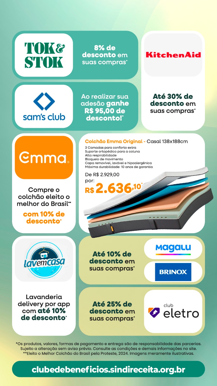 As parcerias exclusivas também incluem serviços que facilitam a rotina, como lavanderia delivery, além de oportunidades para equipar e organizar a casa com mais qualidade e economia. Benefícios pensados para trazer mais praticidade, conforto e bem-estar aos filiados e filiadas.