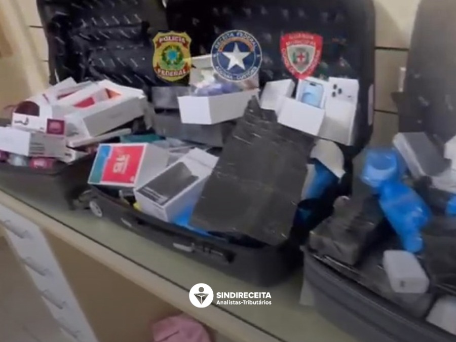 Durante o trabalho de fiscalização de bagagens despachadas em voos comerciais, os agentes identificaram malas com indícios de transporte de mercadorias sem documentação fiscal. Após a verificação, três passageiros foram associados às bagagens suspeitas e encaminhados para a área de inspeção.