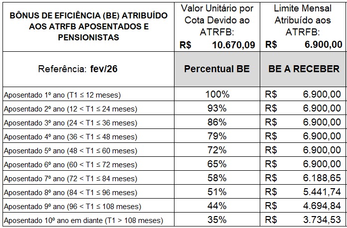 Os valores atuais informados apresentam uma alteração positiva em relação aos valores informados anteriormente (Veja a nota AQUI) e isso foi em decorrência de uma manifestação do Sindireceita, que apresentou um questionamento e que foi acatado.