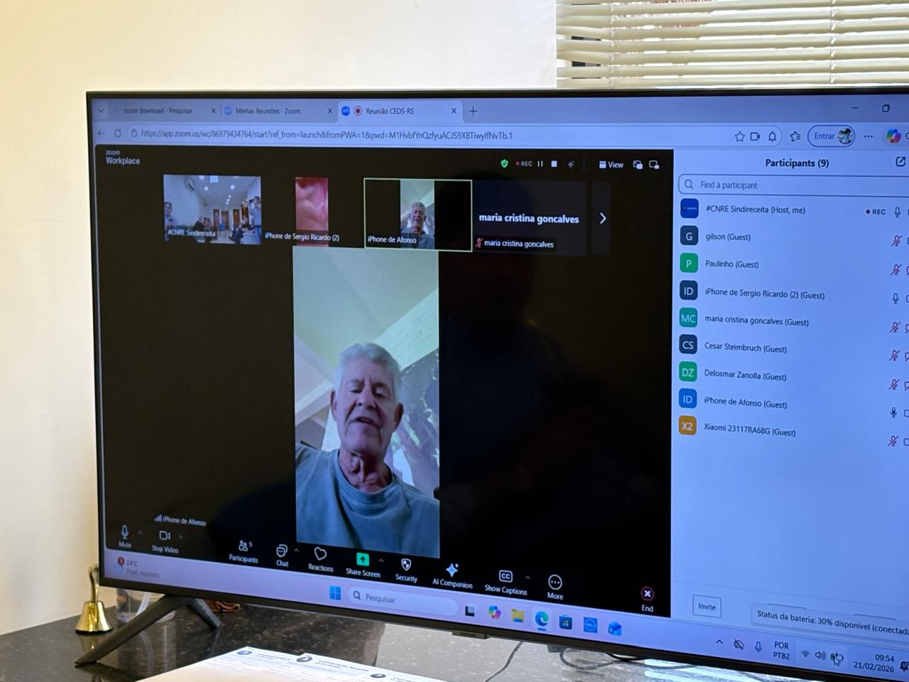 A reunião contou com a participação presencial do diretor de Estudos Técnicos da Diretoria Executiva Nacional (DEN), Fabiano Rebelo, e do consultor Fabiano Pereira, que se deslocaram para acompanhar os debates e contribuir com as discussões. Também participou, representando a DEN, o diretor de Assuntos Aduaneiros e delegado sindical de Passo Fundo (RS), Gerônimo Luís Sartori, que foi escolhido como conselheiro do CEDS/RS para representar o estado no CNRE.