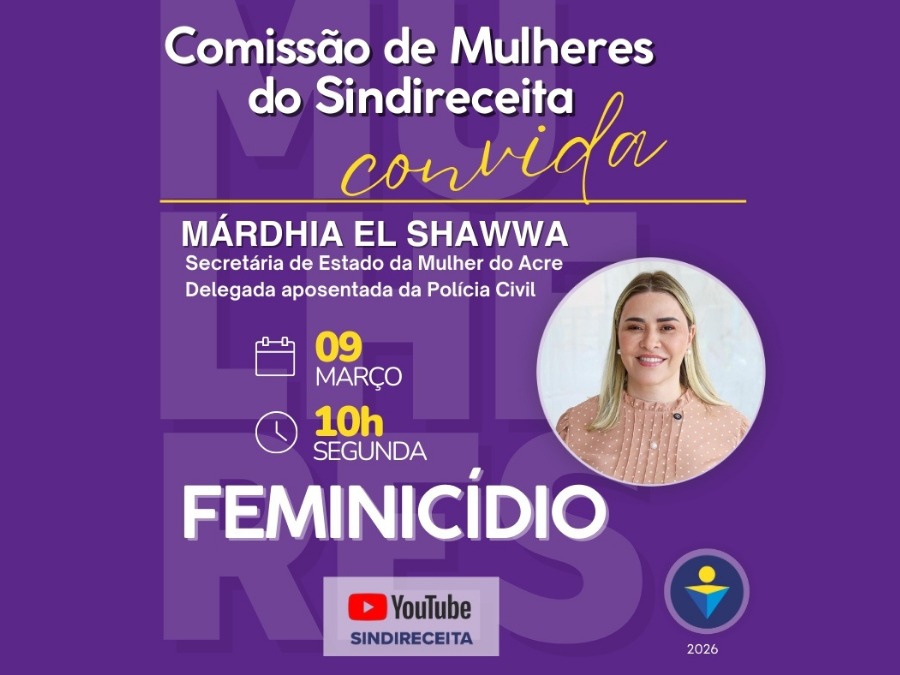 A Secretária de Estado da Mulher do Acre falará no dia 9 de março, às 10h00, com transmissão ao vivo pelo YouTube do sindicato.