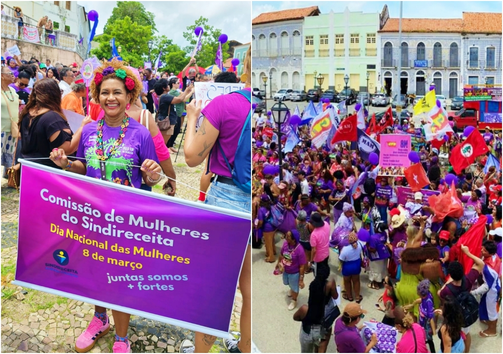 Comissão de Mulheres do Sindireceita marca presença no 8M em todo o Brasil