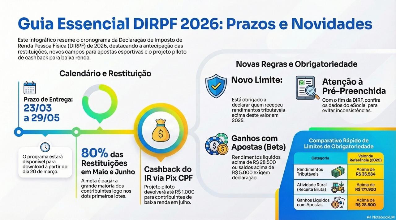 Lembramos que o prazo para entrega da DIRPF 2026 teve início nesta segunda-feira, dia 23. Os contribuintes devem entregar a declaração devidamente preenchida até o dia 29 de maio.