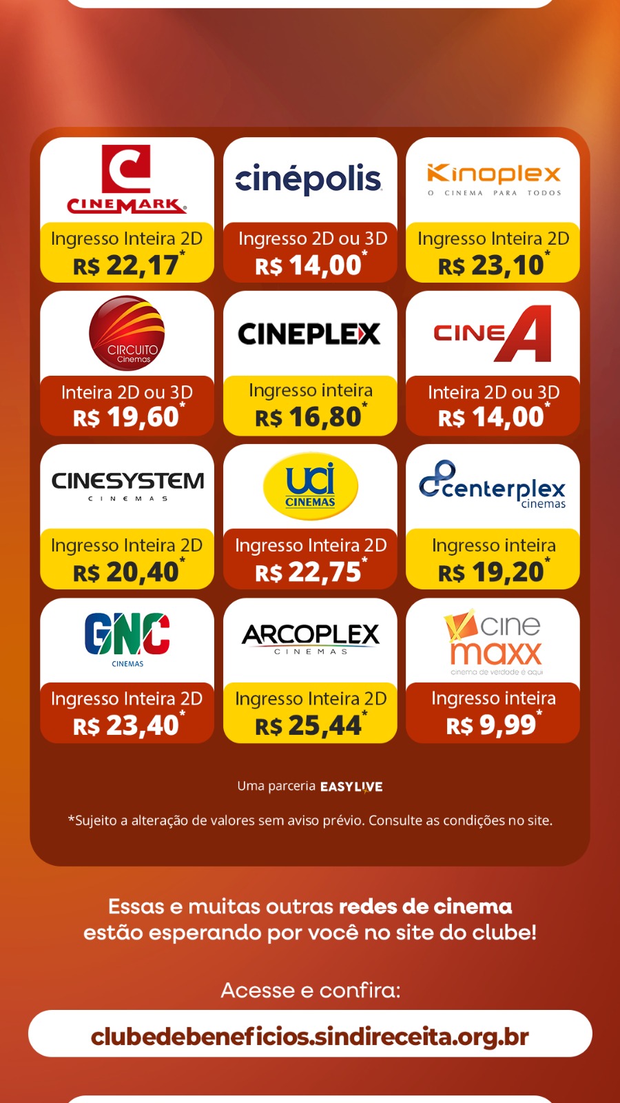 Filiados podem contar com condições exclusivas em diversas redes, garantindo mais economia na hora de assistir aos lançamentos e curtir momentos de lazer com família e amigos.