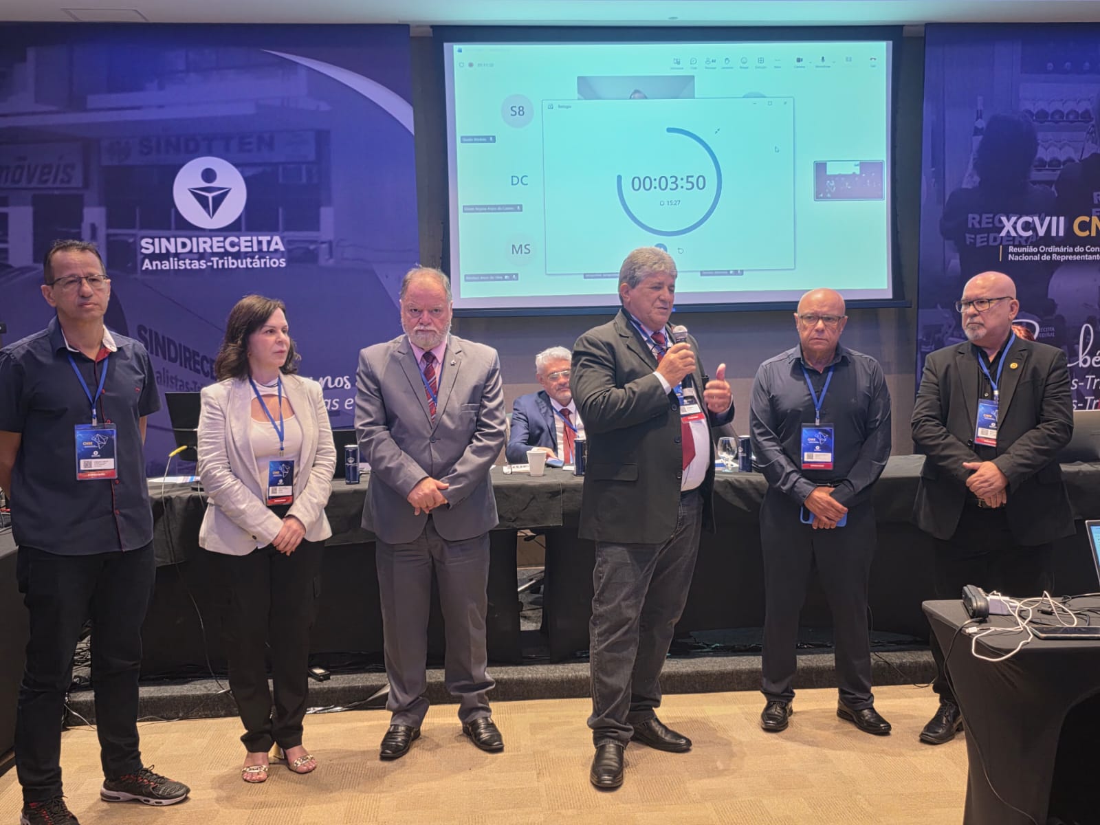 Foi eleita na tarde desta sexta-feira, dia 10, a nova Mesa Diretora do Conselho Nacional de Representantes Estaduais (CNRE) do Sindireceita para o triênio de 2026 a 2028. A eleição ocorreu durante o primeiro dia de trabalho da XCVII Reunião Ordinária do Conselho, que será realizada até o dia 12 de abril, em Brasília/DF.