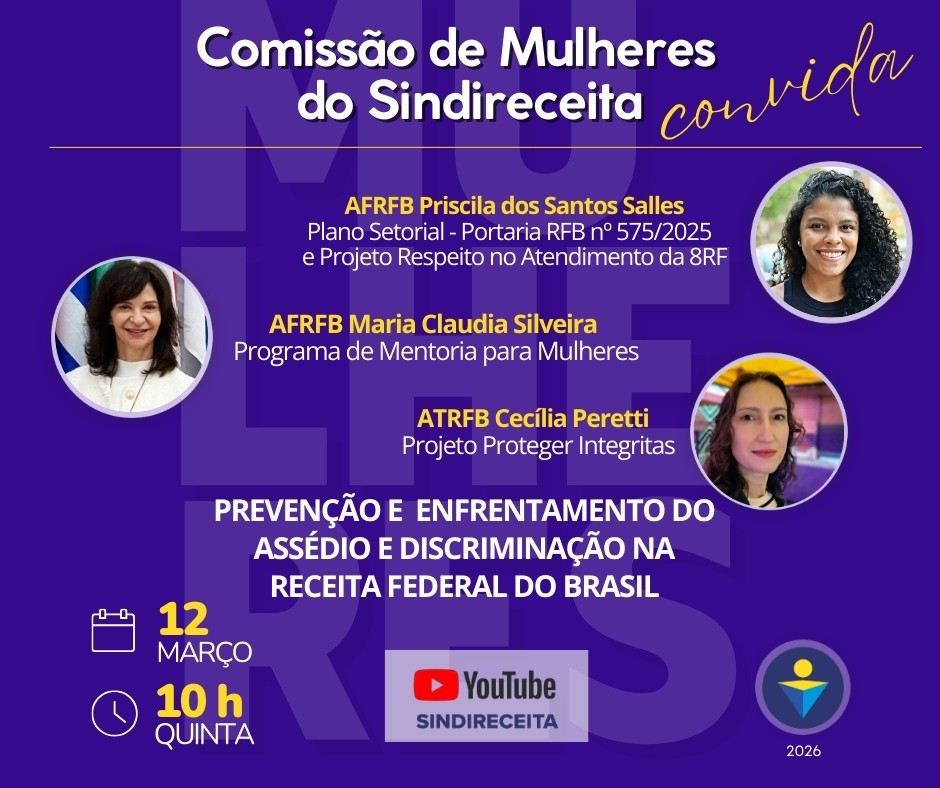 A qualquer momento as Analistas-Tributárias poderão nos encaminhar suas demandas e participar do grupo de WhatsApp ATRFB Mulheres. Para isso, utilize o e-mail mulheres@sindireceita.org.br