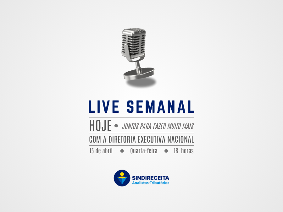 A Diretoria Executiva Nacional (DEN) convida as filiadas e os filiados em todo o Brasil a participarem, hoje, quarta-feira, dia 15/04, da Live Semanal do Sindireceita.