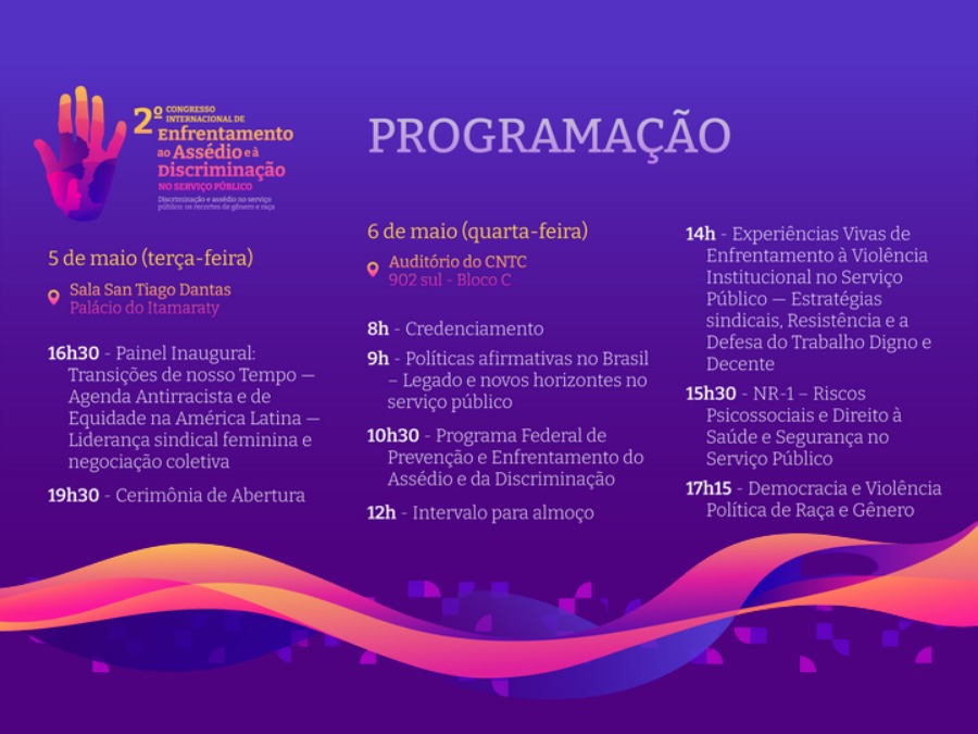 Ao apoiar a divulgação do congresso, o Sindireceita destaca que o enfrentamento ao assédio e à discriminação no ambiente institucional é um compromisso permanente de entidades representativas que atuam na defesa dos direitos, do respeito e da valorização das pessoas no serviço público.