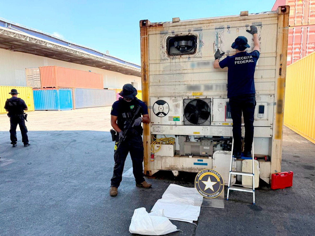 Na manhã de sexta-feira (24/04), Analistas-Tributários da Receita Federal do Brasil encontraram 22 quilos de cocaína no Porto de Paranaguá, no Paraná. A droga estava oculta no condensador de um contêiner refrigerado, que transportava peito de frango congelado com destino ao porto de Rotterdam, na Holanda.