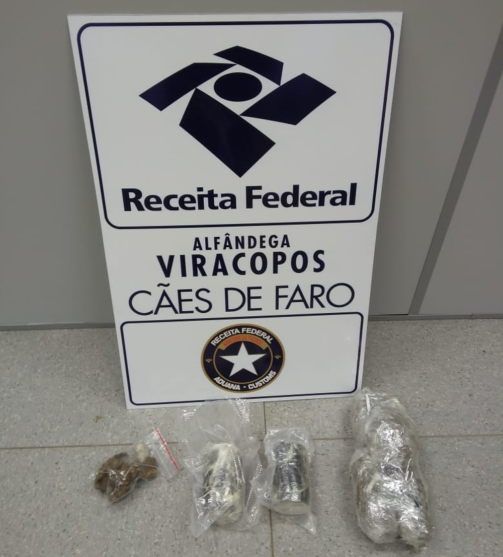 Analistas-Tributários da Alfândega da Receita Federal no Aeroporto de Viracopos participam da apreensão de 1,7 mil comprimidos de ecstasy