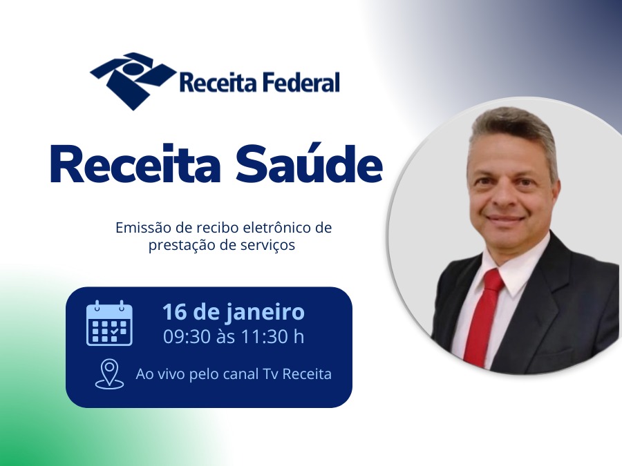 6ª Região Fiscal (MG) promoverá Live no Tv Receita, no YouTube, sobre o Receita Saúde