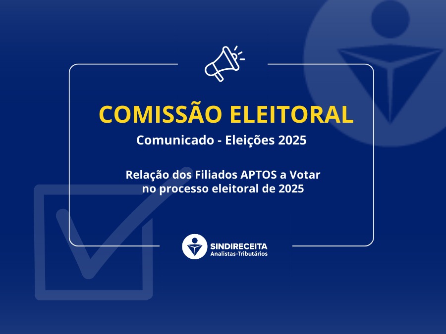 A Comissão Eleitoral COMUNICA que encaminhou nesta data à Presidência da Diretoria Executiva Nacional do SINDIRECEITA o arquivo contendo a Relação dos Filiados APTOS a Votar no processo eleitoral de 2025