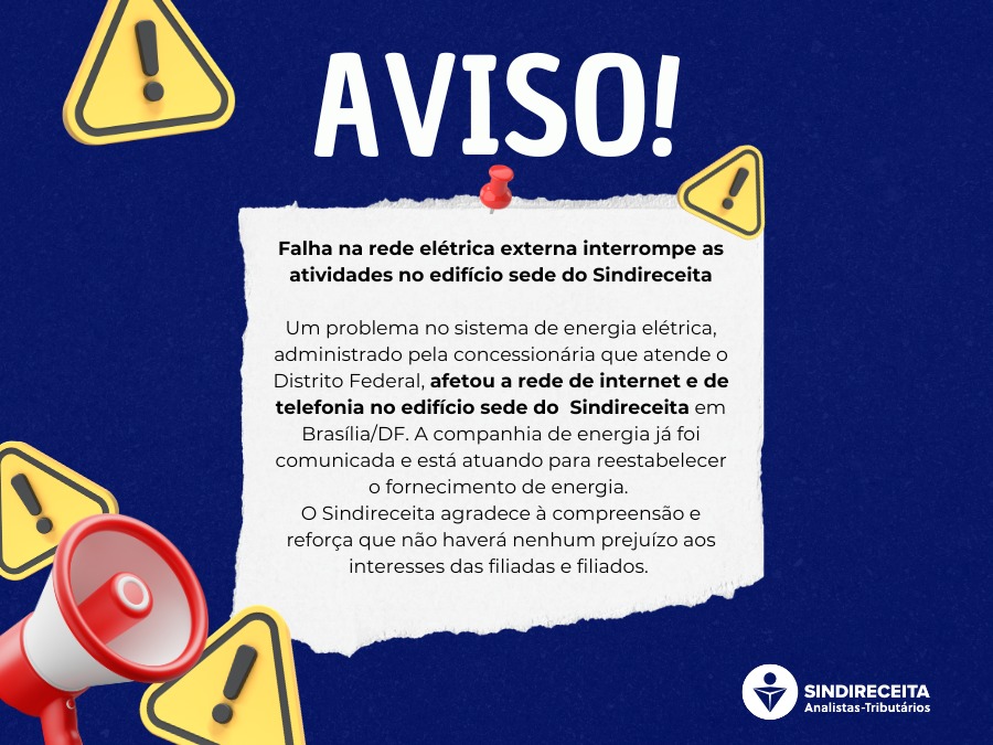 Problema no sistema de energia, administrado por concessionária que atende o DF, afetou a rede de internet e telefonia na sede do Sindicato.