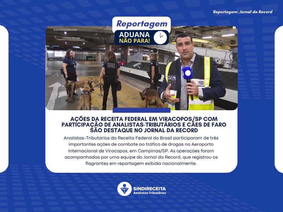 Analistas-Tributários da RFB atuam em apreensões em Viracopos/SP que são destaque no Jornal da Recor...