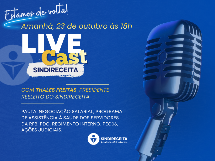 Hoje tem Live Cast com o presidente reeleito do Sindireceita, Thales Freitas; participe!