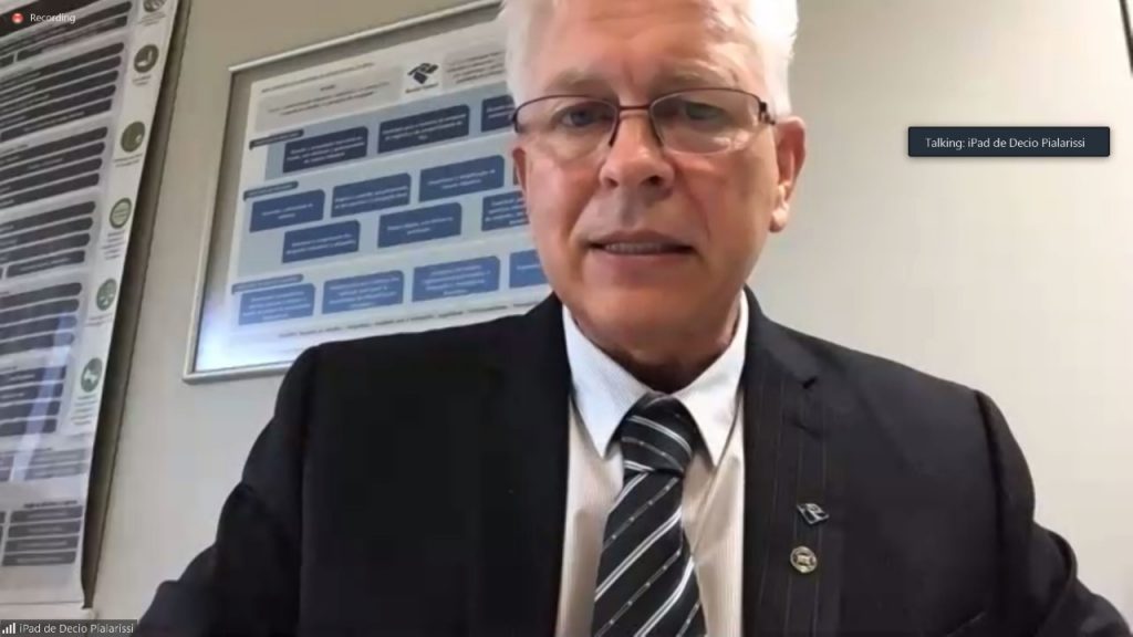 Ao representar o secretário da RFB, José Barroso Tostes Neto, que não pode participar por ter sido convocado para uma reunião no Ministério da Economia, o subsecretário-geral da RFB, Decio Rui Pialarissi, abriu sua apresentação destacando o trabalho dos Analistas-Tributários e dos demais servidores da RFB durante a pandemia da COVID. Ele reforçou que a RFB adotou uma série de medidas para ampliar a atuação da Aduana durante a pandemia e também para contribuir para manutenção da atividade econômica. “A Receita Federal não pode parar. Na Aduana, não temos como realizar todo o trabalho a distância. A RFB atuou fortemente junto ao Ministério da Economia para manter a operação de empresas, para isso, diversos procedimentos foram simplificados. Foram publicados 18 atos normativos relacionados à pandemia visando a facilitação de desembaraços de mercadorias, a flexibilização de procedimentos e prazos de regimes aduaneiros e reduzidos impostos de importação de produtos relacionados ao combate à pandemia. Também foram adotadas medidas de proteção aos servidores que, em muitas unidades, trabalharam 24 horas por dia para atender às demandas de importação e liberação de mercadorias e manter o combate aos crimes de contrabando”, destacou.
