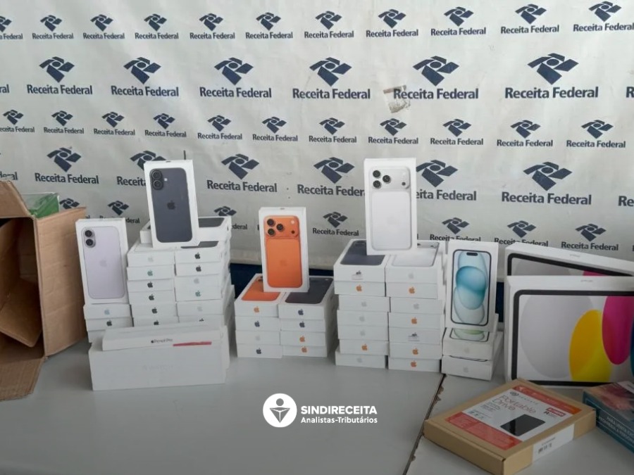 Entre as mercadorias apreendidas, encontram-se 188 smartphones, sendo 45 iPhones com valor estimado em R$ 950.000.
