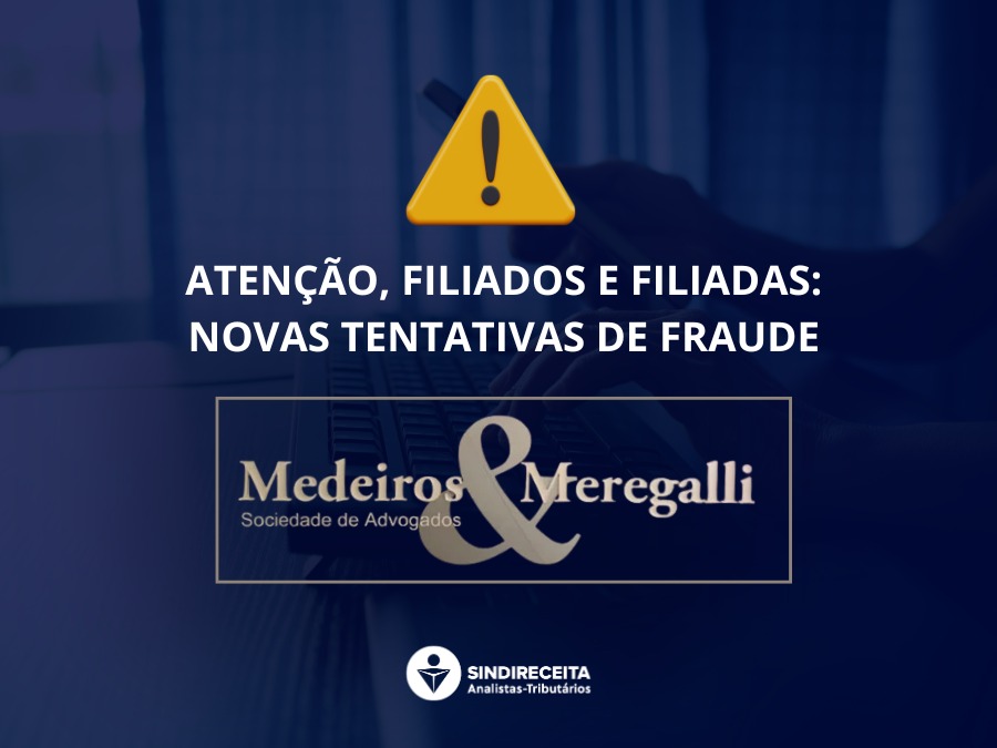 A Diretoria de Assuntos Jurídicos alerta aos filiados e filiadas sobre nova tentativa de fraude utilizando o nome do escritório Medeiros e Meregalli